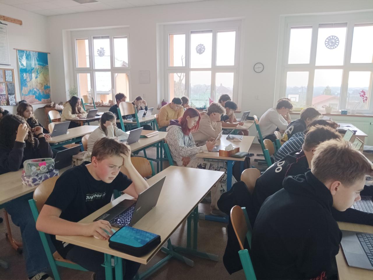 V posledním lednovém týdnu proběhlo na druhém stupni školní kolo geografické olympiády. Novinkou oproti minulým ročníkům bylo, že školní kola musela proběhnout online přes centrální webový portál Geografická olympiáda. Zájemci o soutěž byli nejprve zaregistrováni a poté vyučující zeměpisu ve vybraný den a čas zadal školní kola pro jednotlivé kategorie. Tudíž vyhodnocení bylo 100% spravedlivé.