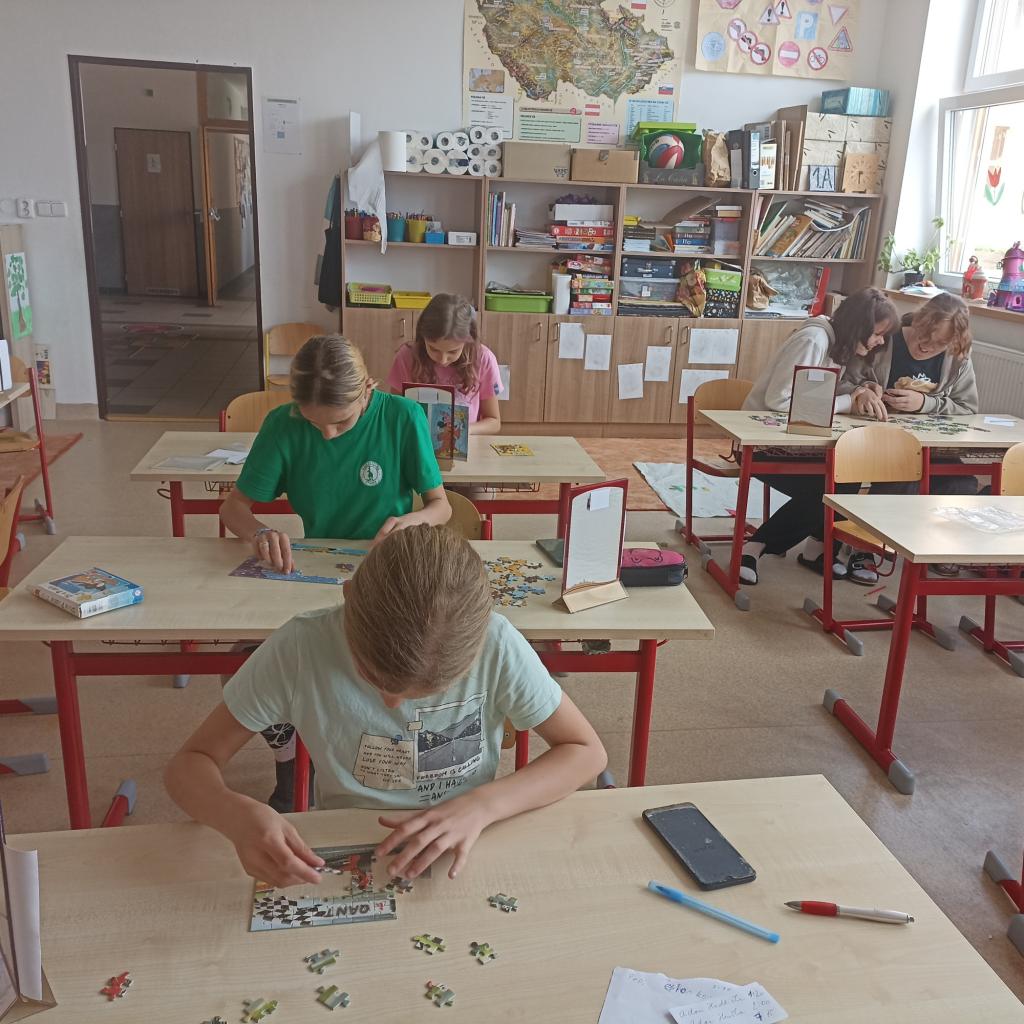Pro všechny ročníky byly připraveny skládačky. Každý ročník měl své stanoviště s jinou skládačkou. Proto mohlo soutěžit devět žáků najednou. To se nestalo vzhledem k rozvrhům jednotlivých tříd. Časově by bylo nemožné čekat u některých stanovišť druhého stupně, až poskládají soutěžící složitější skládačku celou, takže celková doba skládání jednoho účastníka byla stanovena maximálně na 5 minut. Pokud se mladším žákům podařilo složit puzzle celé, rozhodoval čas, za který se jim to podařilo. U starších žáků s mnohem vyšším počtem dílků rozhodovalo, kolik dílků se jim za určených 5 minut podaří složit.