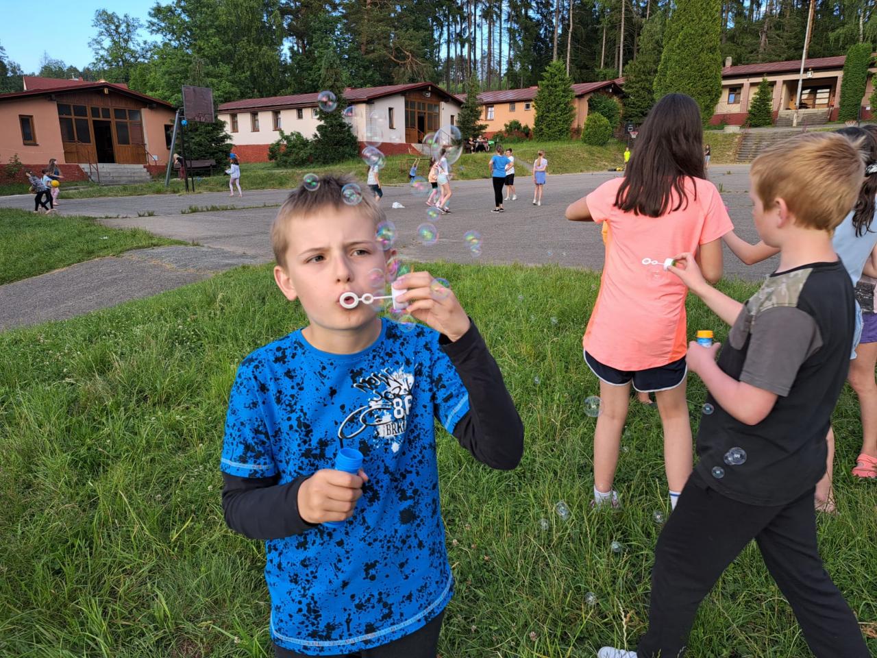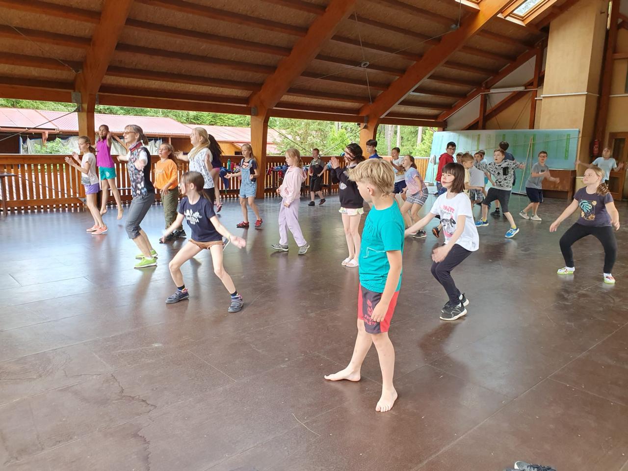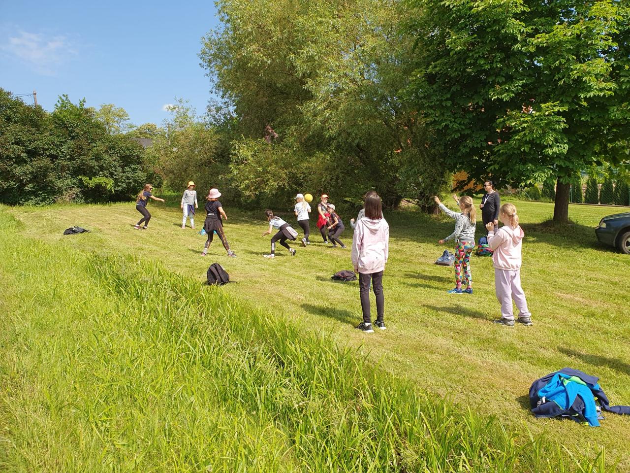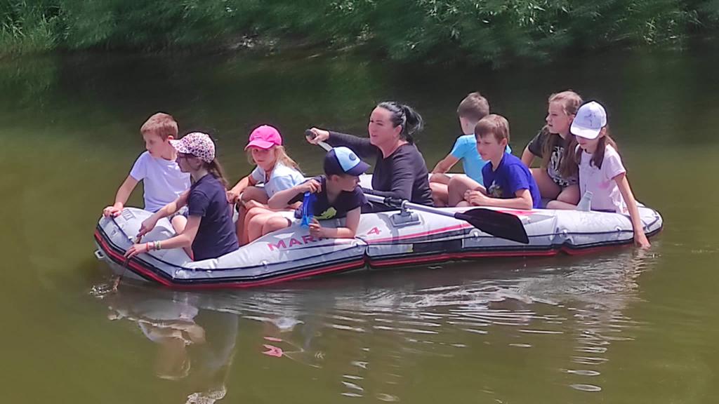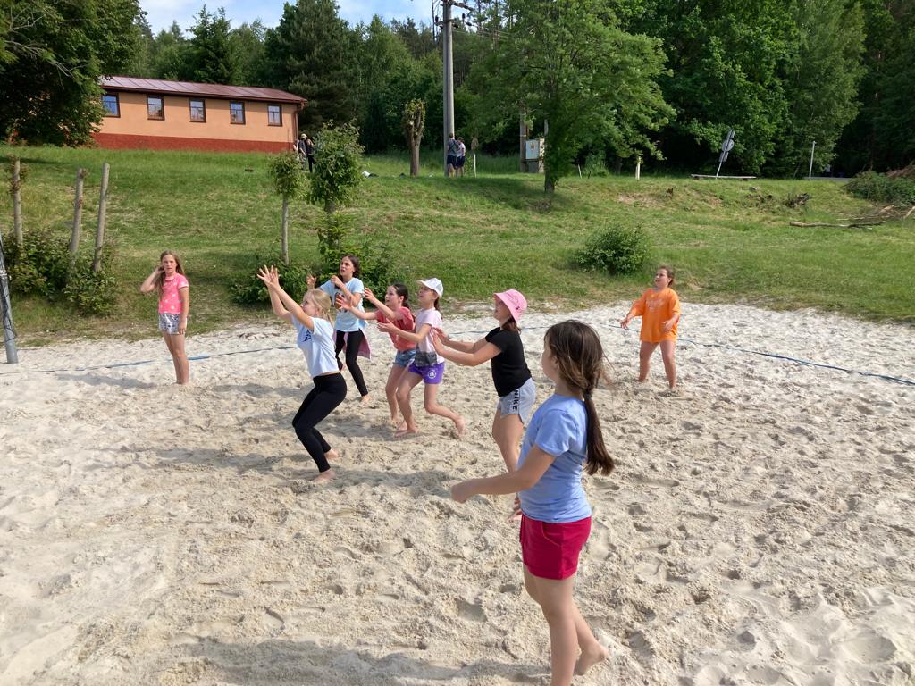 Část dětí plula po řece Blanici a zkoumala život na říčním břehu. Zahráli jsme si nohejbal a přehazovanou. Posvačili jsme, rozšifrovali jsme další klíč v naší námořní hře. Naučili jsme se další část námořnického tance a hupsli jsme do bazénu. To bylo výskotu !!!