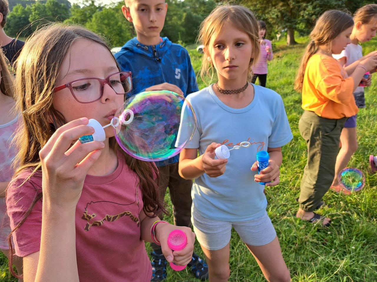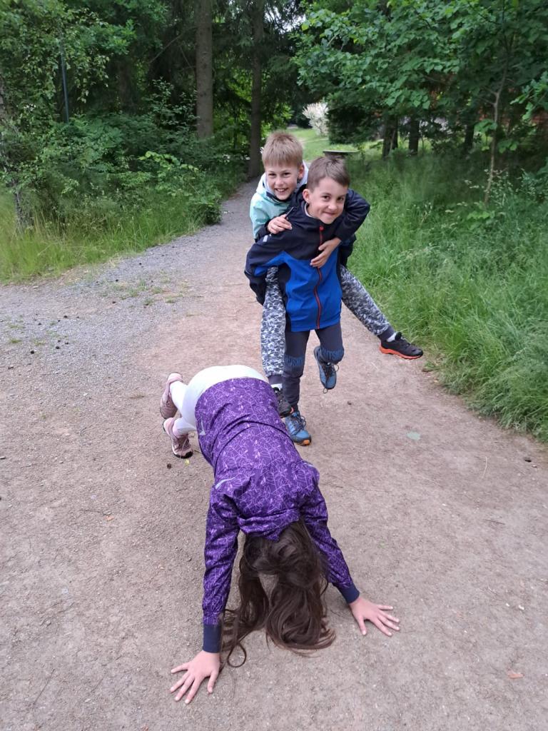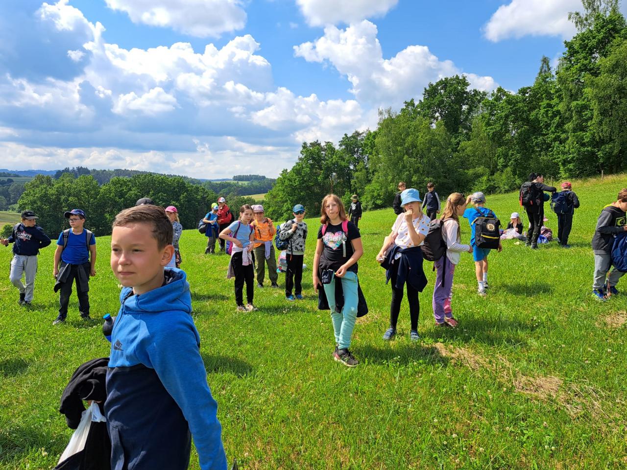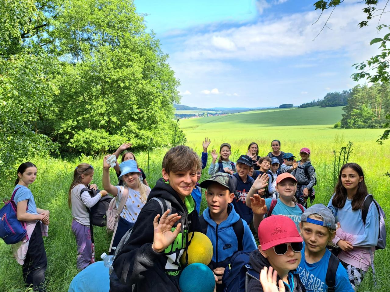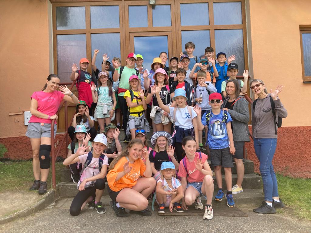 Máme školu v přírodě, tak jsme se dnes učili. Šli jsme cestou na Laby a probrali jsme kdeco. Hospodářská zvířata, listnáče, jehličnany, rostlinky, brouky, turistické značky, pahorkatinu, zahráli jsme si vybíjenou na louce, vypracovali jsme listy z matematiky, vlastivědy a přírodovědy a v družném kamarádství jsme se vrátili na oběd.