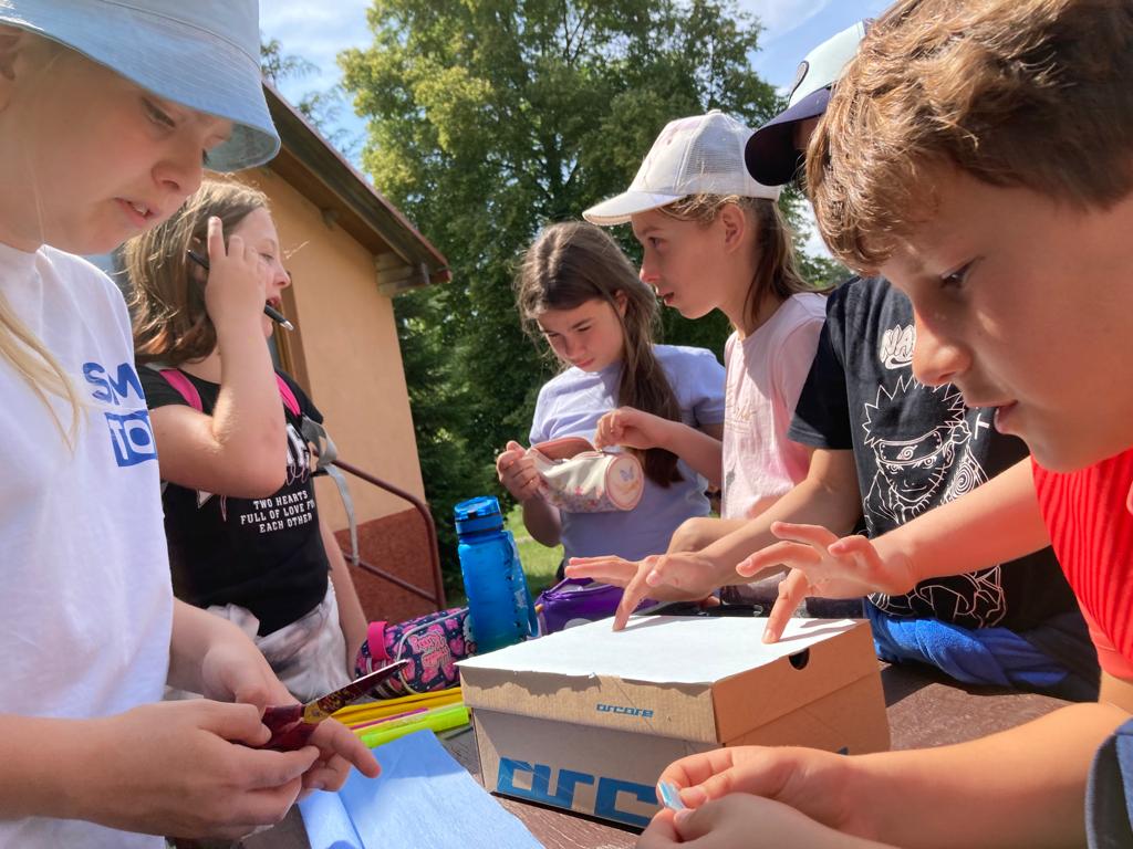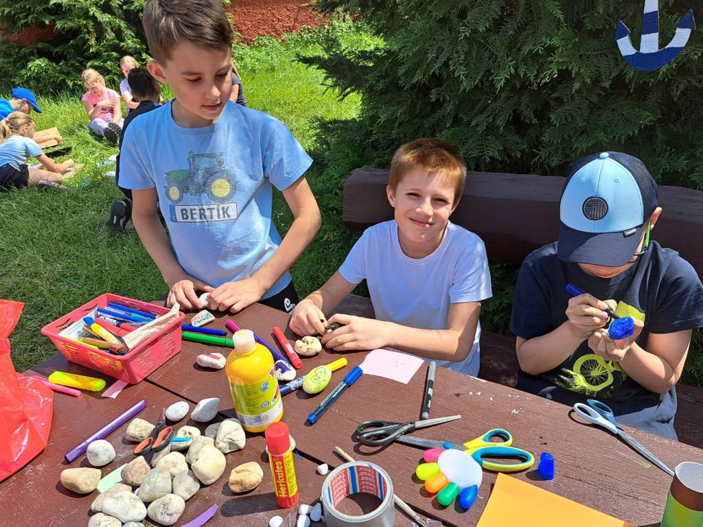 Po krátkém odpoledním klidu jsme se pustili do tvoření: malovali jsme na oblázky, vyráběli jsme pirátské papoušky a akrylovými barvami jsme malovali na téma námořníci.