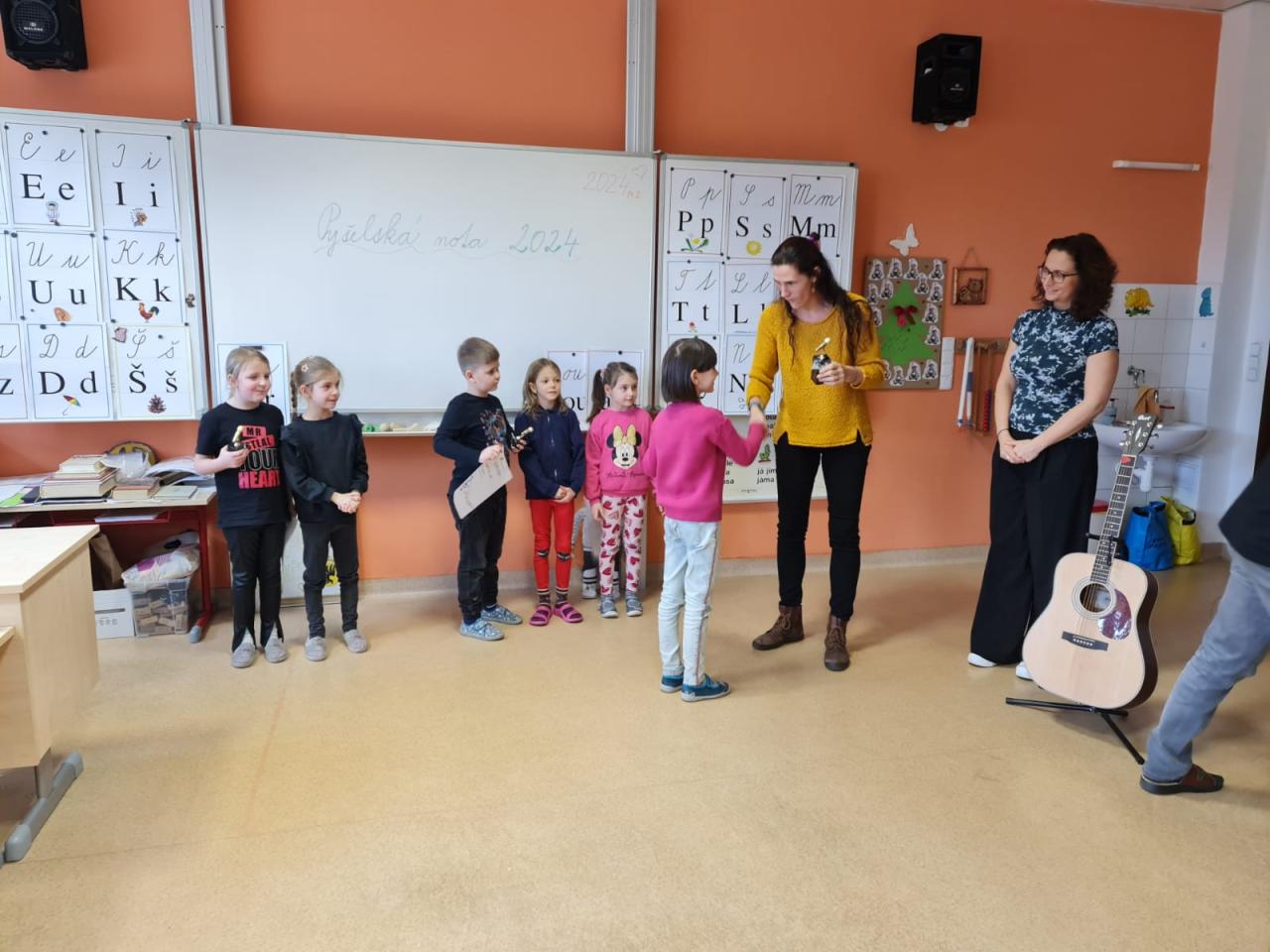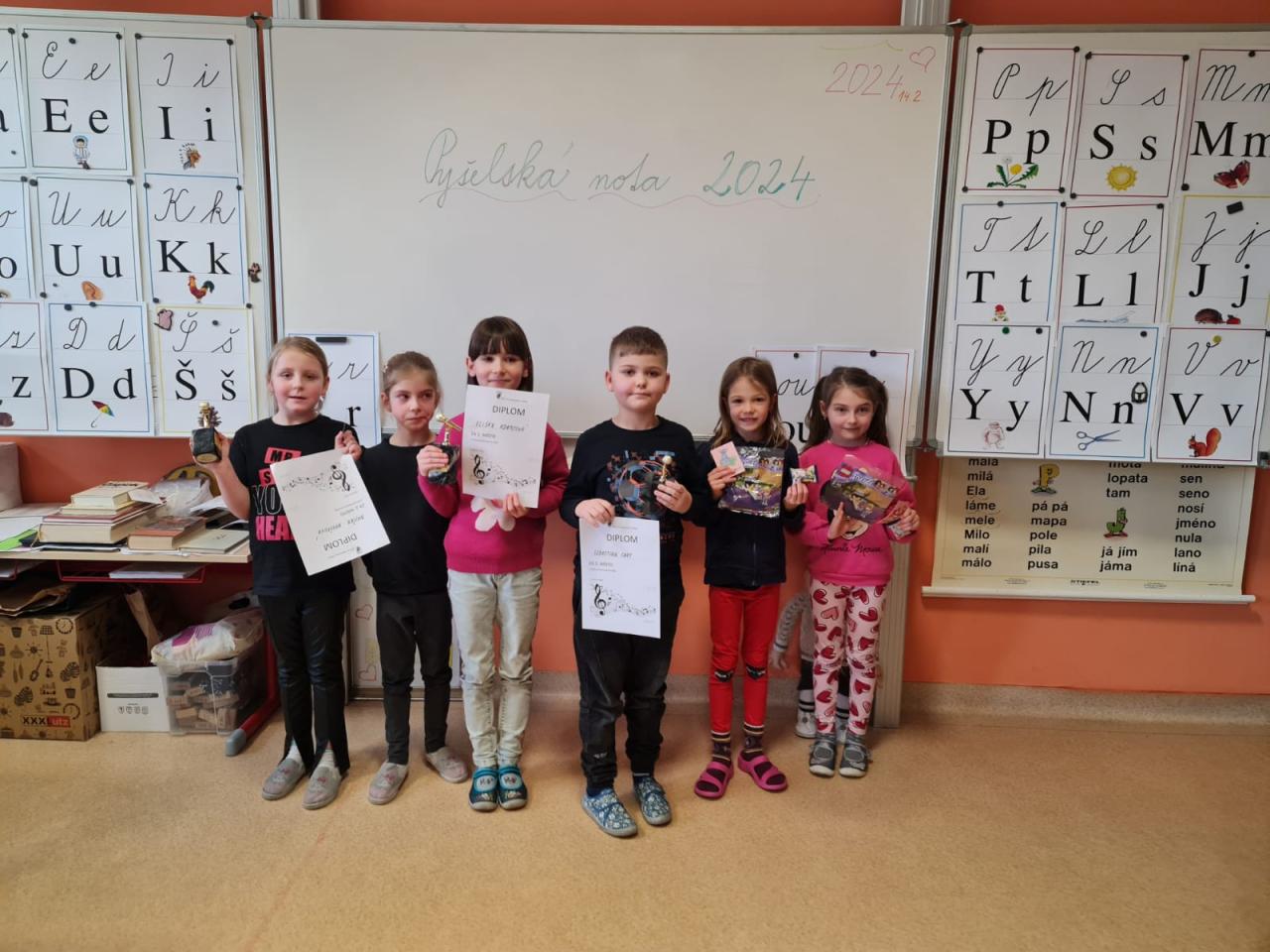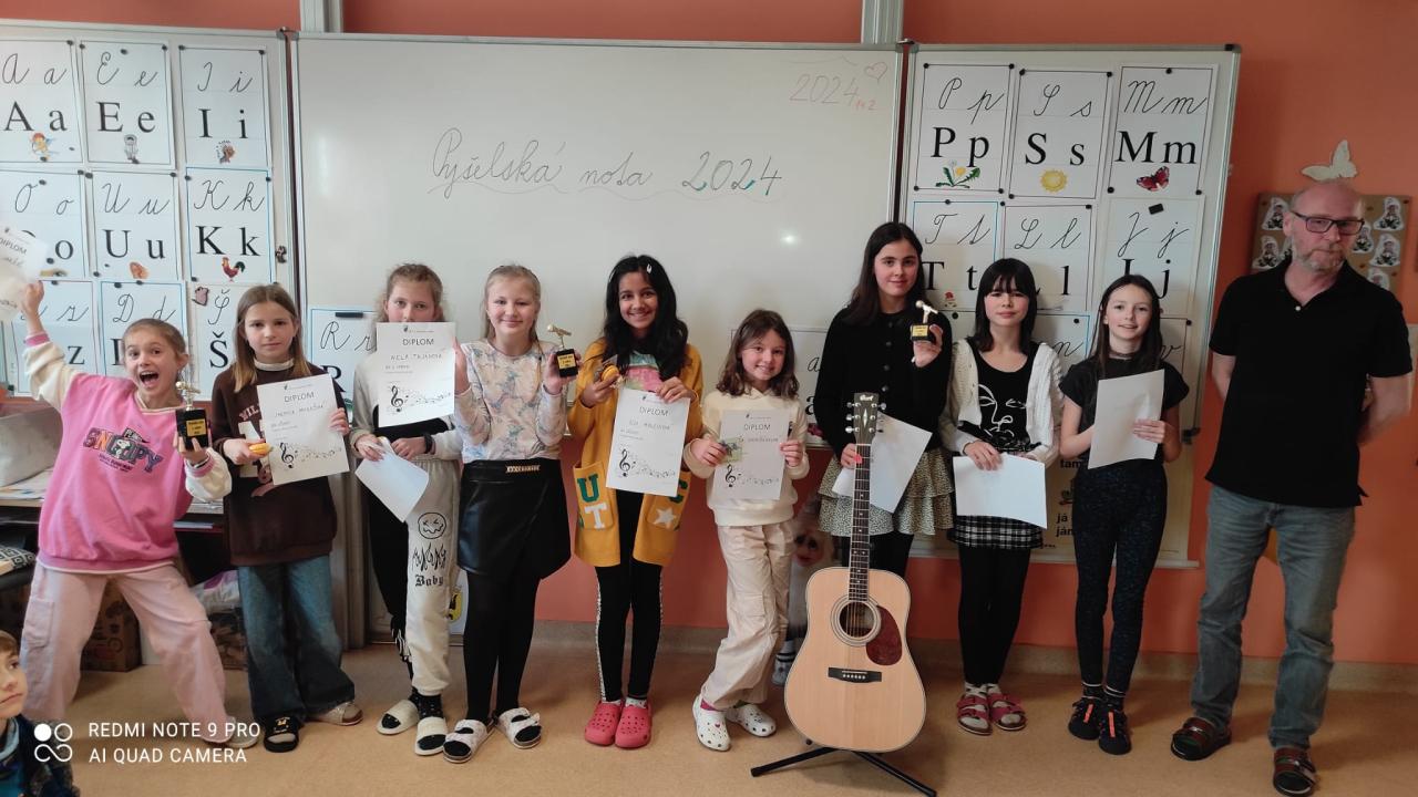 V den sv. Valentýna 14. 2. 2024 proběhlo školní kolo soutěže Pyšelská nota. Soutěže se zúčastnili žáci 1. stupně. Děti zpívaly písničky lidové i umělé. Prvňáčkové „malí slavíci“ překvapili svojí odvahou a nasazením. Pro ně to byla velká premiéra. Starší žáci už byli zkušenější, protože věděli, jak soutěž probíhá a co je asi čeká.